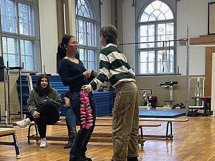 Im Kurs Darstellen und Gestalten hat die 10. Klasse ein Theaterstück zum Thema „Verlockung“ entwickelt und auf die Bühne gebracht. Als Inspiration diente der Film Fack ju Göhte, dessen humorvolle und zugleich gesellschaftskritische Sicht auf das Schulleben die Schülerinnen und Schüler anregte.