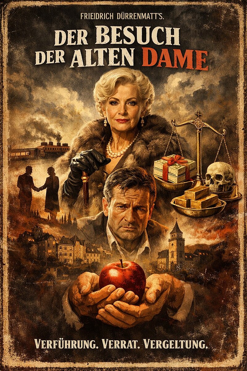 Im Rahmen des Projektes zur “Nacht der Ideen - Verlockend Nachhaltig" setzt sich die Klasse 10b intensiv mit der tragischen Komödie „Der Besuch der alten Dame“ von Friedrich Dürrenmatt auseinander. Das Stück, das 1956 uraufgeführt wurde, beginnt mit einer prekären Situation: Eine Milliarde für Ills Tod. Was bei den Bürgerinnen und Bürgern der verarmten Stadt Güllen zunächst pures Entsetzen auslöst, entwickelt sich nach und nach zu einem spannungsgeladenen Konflikt zwischen moralischen Grundsätzen und dem verzweifelten Versuch, eine Gemeinde vor dem wirtschaftlichen Ruin zu retten.